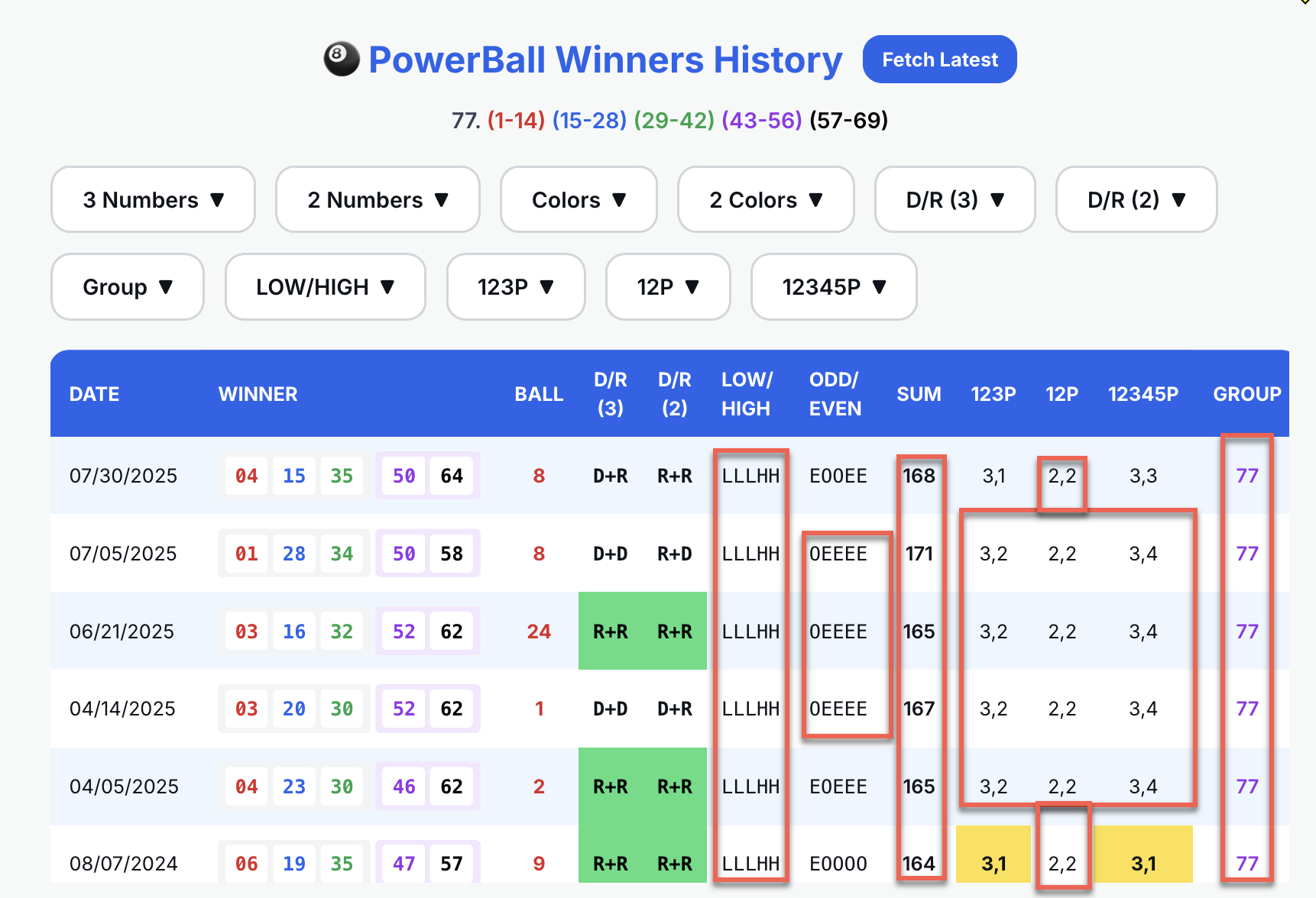 Group Number 77 has been hitting repeat patterns back to back. Look at the sums: 164, 165, 167, 168
