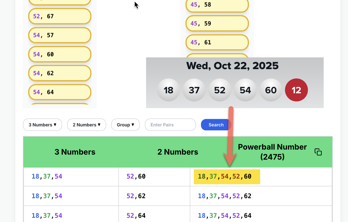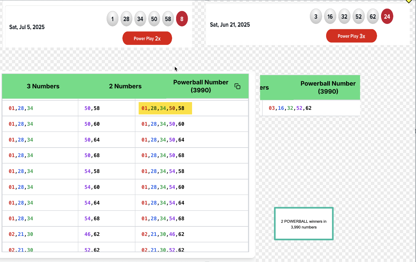 Look at this. As Im adding the filters to POWERBALL lotto pool, repeat patterns are being uncovered. This means fewer numbers to play and a guaranteed win if we cover the numbers.